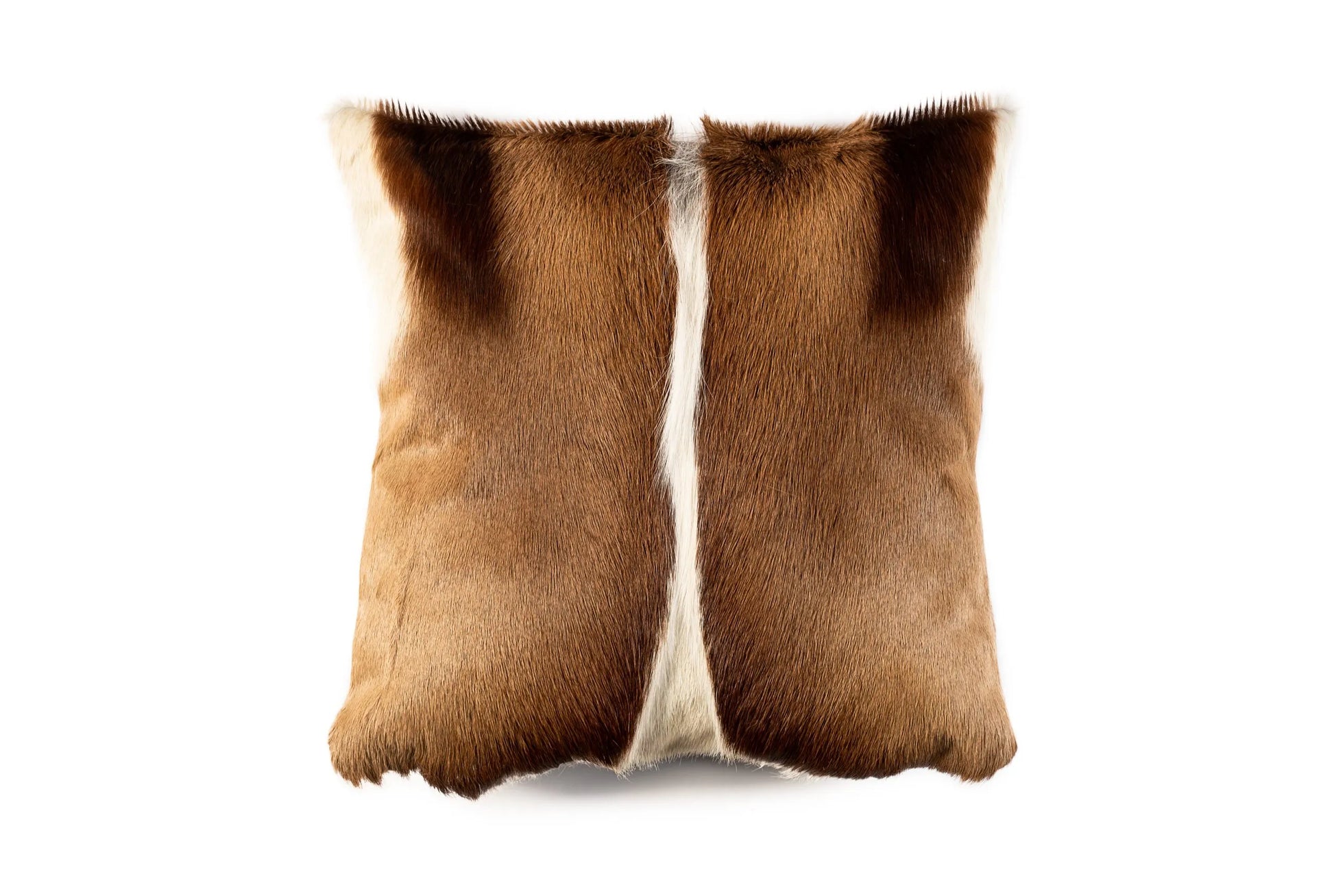 Das Springbock Fellkissen(hülle) mit Lederrückseite aus Namibia ist ein exklusives Wohnaccessoire, das jeden Raum aufwertet. Mit den Maßen von 45 x 45 cm bietet es sowohl Komfort als auch Stil. Das hochwertige Fell stammt aus Namibia und verleiht dem Kissen eine natürliche und authentische Note. Die Echtlederrückseite sorgt für Langlebigkeit und ein luxuriöses Finish. Perfekt für Liebhaber von exotischer Dekoration. Die hier angebotene Kissenhülle wird ohne Füllung geliefert.